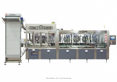 sistema electrónico para el control del flujo de botellas en la entrada y salida de la máquina con arranque y parada automáticos en caso de falta de botellas en la entrada o atasco de botellas en la salida.
