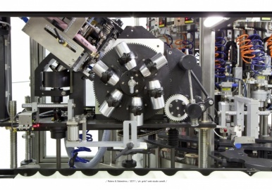 un (1) carrusel giratorio completo con cabezales neumáticos para el engarzado final de la cápsula.