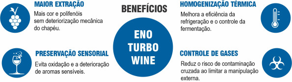 ENO TURBO WINE es un sistema de remontaje portátil, práctico, muy sencillo y respetuoso con el orujo para vinos tintos. Utiliza el mismo CO2 de la fermentación para realizar remontajes cerrados en menos de 5 minutos, garantizando la descomposición total del sombrero.