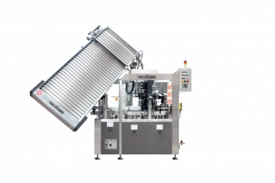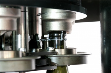 Museletadoras automáticas rotativas tipo “Rekord” para la distribución automática y la atadura de los bozales en botellas de espumosos, para producciones de 4.000 a 25.000 b/h. Máquinas completas de sistema automático de toma y distribución de los bozales, sinfín transporte botella en entrada y carrusel rotativo multicabezales para la atadura de los bozales, controles electrónicos presencia botellas en entrada y acumulación en salida. Todas las funciones son gestionadas por PLC e Inverter situados en el armario eléctrico centralizado. El chasis está revestido en acero inoxidable con puertas de acceso en material fono-absorbente y protecciones de seguridad según normas CE